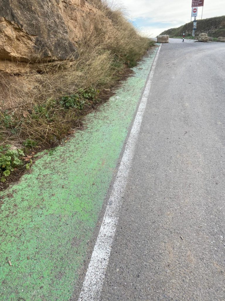 En aquest carrer hi ha una vorera pintada de verd, camí segur per anar a l’escola, on cada dia, de dilluns a divendres passen en infants per anar a l’escola. Com es pot veure en la imatge, està llastimós. D’ençà que es va pintar no s’hi ha fet cap manteniment.